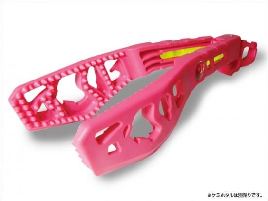 ライトゲーム用フィッシュグリップです。最強の肉食恐竜といわれるT-REXをモチーフとした形状を採用し、魚を掴む面が広く、縦横ランダムに配した円錐状の“牙”でしっか魚をホールドします!また、表面の抜き穴形状が水洗いなどをしやすくし、メンテナンスも楽チンです!