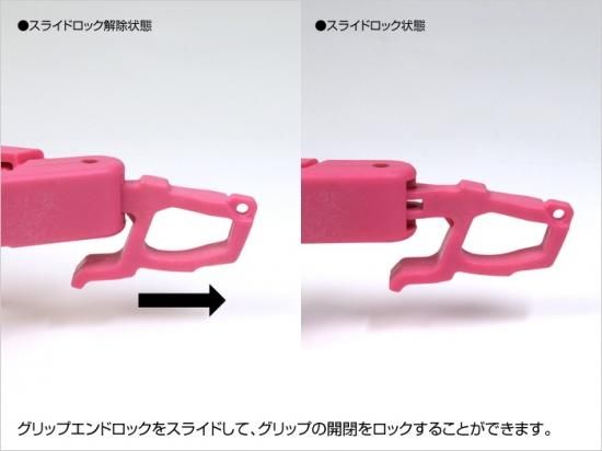 グリップエンドにはスライドロック機能を装備し、簡単に開閉が可能なのに加え、ランヤードホールにはカラビナ、スパイラルコードも取り付けられます。