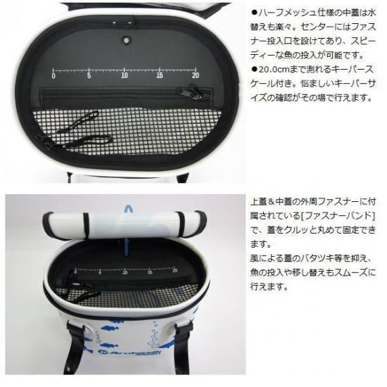 ラン&ガン釣行の際や短い時合いの釣りなど、ライトゲームシーンでは意外と活躍の場が多いアイテム。 特にテトラ帯やゴロタ場などクーラーBOXの持ち込みが困難なポイントで、ターゲットの簡易ストッカーとして重宝されています。