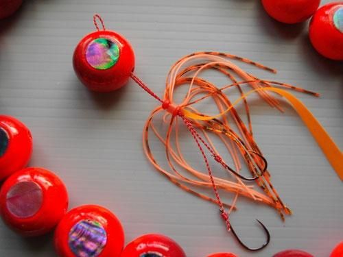 製作で大事な事は、鯛玉(鉛)がスムーズに自由に動く事、フックやラバーに固定されてない事です。