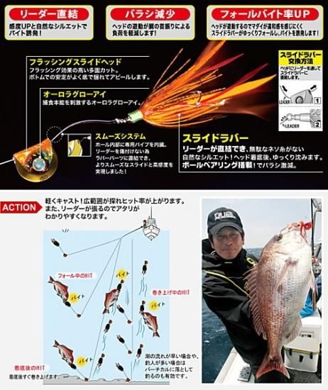 ■マダイのバイトを誘発する、フラッシング効果の高い多面カット採用のスライドヘッド