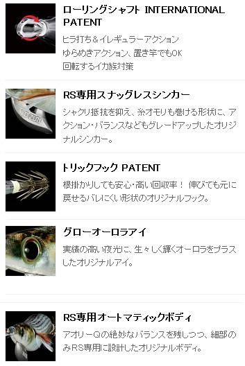■イカの好むベイトフィッシュを再現したリアルカラーと、全イカが好むイカ釣りのド定番ケイムラボディを採用した紫外線カラーなど船釣り・岸釣り問わず全てのイカを狂わせる性能を備えた「アオリーQ RS」。