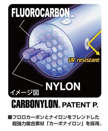 ● フロロカーボンとナイロンをブレンドした耐ショック性に優れた超強力複合素材「カーボナイロン」を採用。