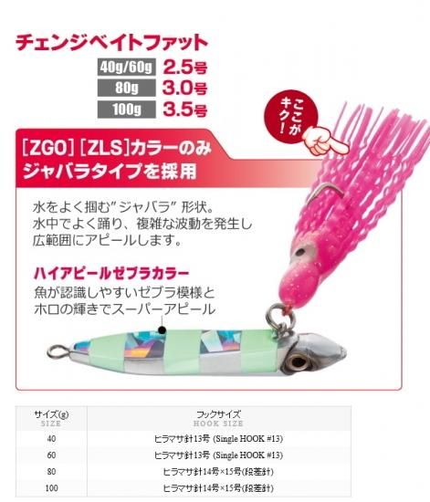 ■壊れにくくボリュームのあるボディが強く水を押し広範囲にアピール「チェンジベイトファット」(40/60g:2.5号,80g:3.0号,100g:3.5号)