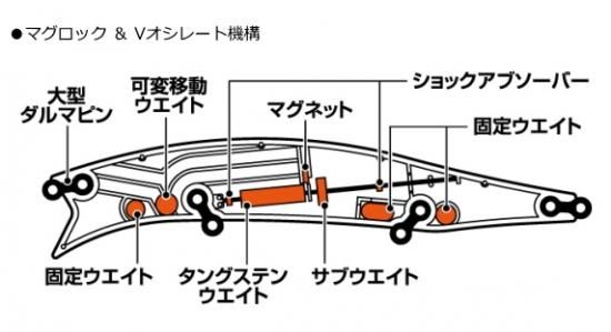 ■ロッドティップを下げることにより、デッドスローリーリングでは水面下約30cm、ミディアムリトリーブではMAX50cm程度の潜行レンジをトレースできる「可変移動・Vオシレート」を搭載。シーバスの追いが悪い時は、ロッドポジションとリトリ−ブスピードの組み合わせで潜行レンジをコントロールし、ヒット率を向上させることができる。