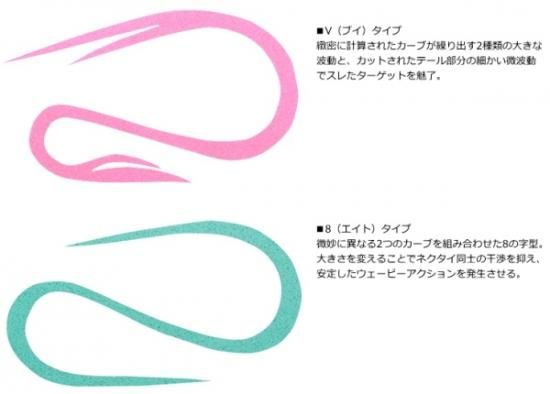緻密に計算されたカーブが繰り出す2種類の大きな波動と、カットされたテール部分の細かい微波動でスレたターゲットを魅了。