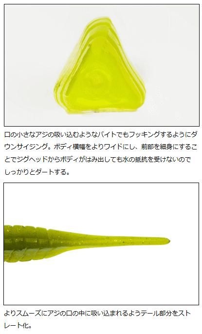 アジングに対応した一口サイズの1.3inch:極小ボディながら、リアクションバイトを誘うキレキレダートを演出