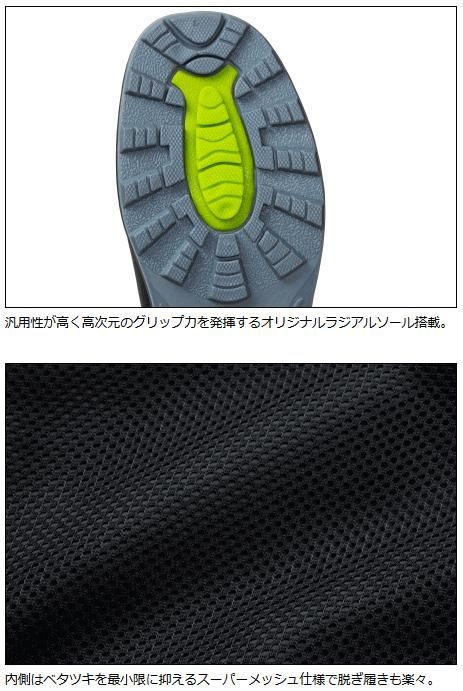 内側はベタツキを最小限に抑えるスーパーメッシュ採用で脱ぎ履きラクラク。