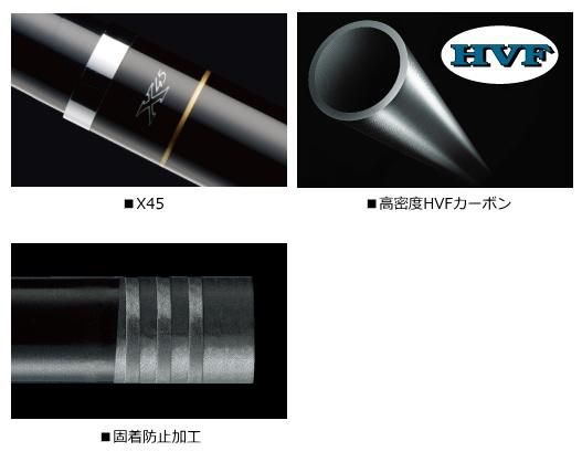 玉の柄に求められる性能をとことん追求したハイバリュー・ハイパフォーマンスモデル。求めやすい価格ながらマテリアルに筋肉質の高密度HVFカーボンを用い、節の先端部にはダイワ独自のネジレ防止補強構造「X45」を採用。サラシやウネリに揉まれてもブレやネジレが生じにくく、ストレスなく一発で魚を掬い取ることが可能。全体に張りを持たせ、キレのある操作性と腕に負担を掛けないバランスを実現した。内部には固着防止加工を施し、さらに快適な使用感を追求。シンプルなデザインがひときわ目を引く実戦重視のランディングシャフト。