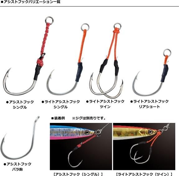 軽量でロングテーパーポイントのフックをさらにサクサス化。驚異の貫通力のフックにしたことで、フォール中の微妙なあたりもフッキングすることが可能。もちろん従来のバレやスッポ抜けを抑える特殊素材のアシストラインや平打ち加工で強度アップした針など基本機能も充実のアシストフック。
