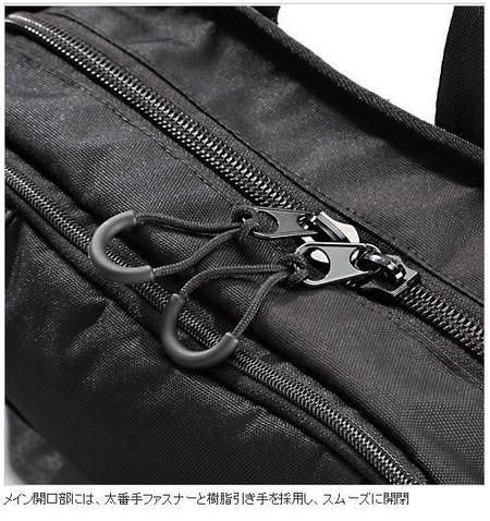 ●メイン開口部には、太番手ファスナーと樹脂引き手を採用し、スムーズに開閉