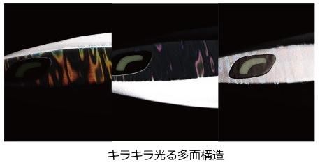 フォール時に水を掴むウイングを腹部に設けた、やや後方重心の木の葉型ボディのスロー系ジグ。重心位置とウイング抵抗のバランスにより、フォール中にときおりブレーキが掛かるようなバイブレーションを発生。薄型ボディ&スリムヘッドでスローからハイピッチまでのジャークに対応。