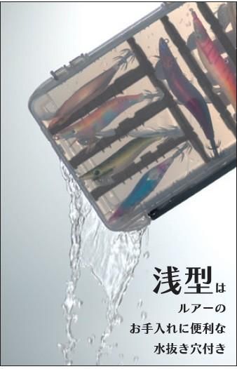 横10cm縦20cmまでのミノーが収納可能。水抜き穴付、13枚もの仕切板付。