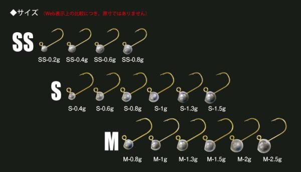●S・Mは速掛け対応のオープンゲイプ、SSは小さなアタリに対し刺さりをフォローする針先ネムリ使用