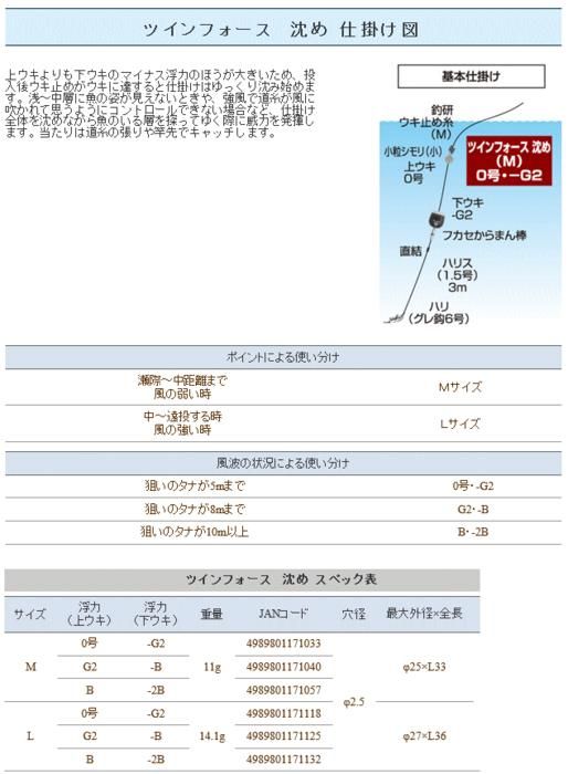 釣研 ツインフォース 沈め M B 【メール便可】 【本店特別価格】