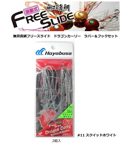 ハヤブサ 無双真鯛 フリースライド ドラゴンカーリー ラバー&フックセット SE137 #11 スクイッドホワイト / メール便可 【本店特別価格】