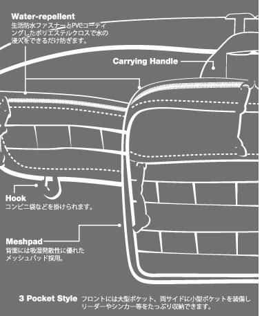 フロントには大型ポケット、両サイドには小型ポケットを装備し小物をたっぷり収納できます。