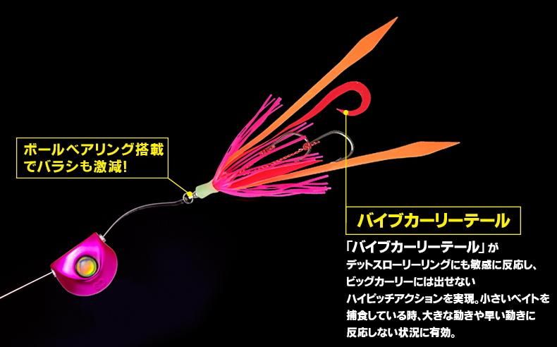 「バイブカーリーテール」がデットスローリーリングにも敏感に反応し、ビッグカーリーには出せないハイピッチアクションを実現。小さいベイトを捕食している時、大きな動きや早い動きに反応しない状況に有効。
