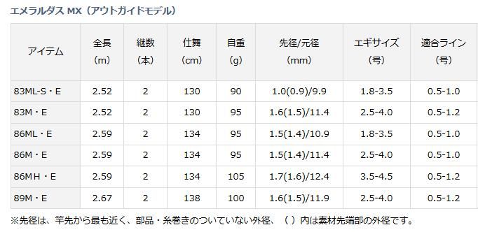 ダイワ 17 エメラルダス MX(アウトガイドモデル) 83M・E / エギングロッド 【釣具】 【daiwa】 【本店特別価格】