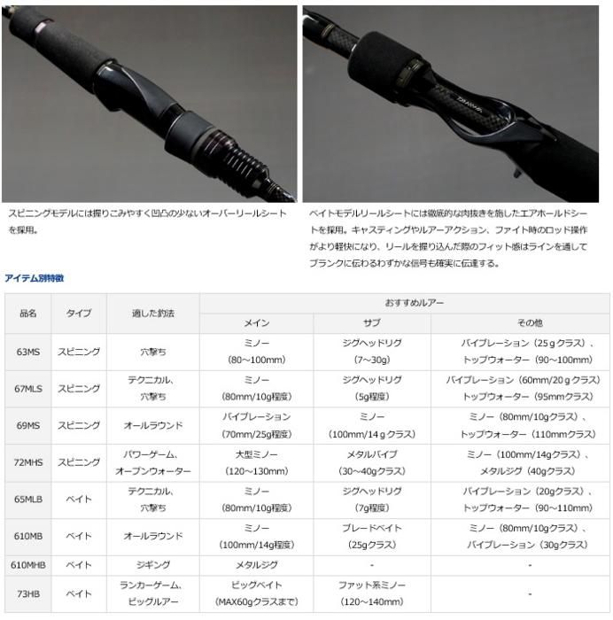 高密度HVFカーボンを採用したブランクは、ルアーをしっかりと動かすことができる張りがありながら魚を掛けると引きに追従してしっかり曲がり込むため、バラしを抑制しつつやりとりも思いっきり楽しめる。強靭なバットパワーは秋〜初冬のベストコンディションのランカーにも屈しない。ボート走行中にルアーを掛けておくのに便利なフックキーパーを標準装備。