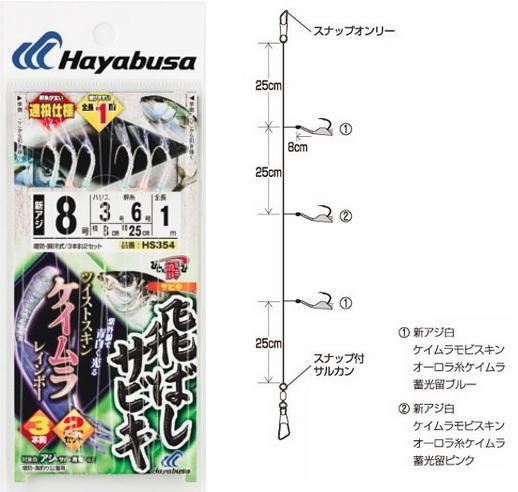 ハヤブサ 飛ばしサビキ ツイストケイムラレインボー HS354 ハリ9号/ハリス4号/幹糸8号 / メール便可 【本店特別価格】
