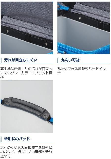 専用バッグならではの機能が満載。15%軽量化し、肩部には特殊滑り止めと、くいこみを軽減する新しいパッド形状を採用。また太番手ファスナーで開閉しやすくなりました。
