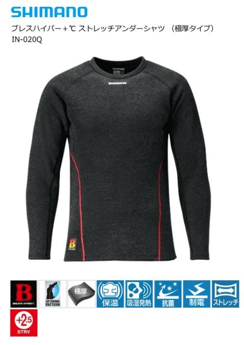 商品情報シマノ ブレスハイパー+℃ ストレッチアンダーシャツ (極厚タイプ) IN-020Q SHIMANO フィッシングフェア 防寒着 防寒シャツ 冬物シャツ 防寒 インナー 中着 肌着 アンダーシャツ