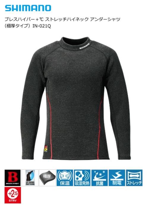 商品情報シマノ ブレスハイパー+℃ ストレッチハイネック アンダーシャツ (極厚タイプ) IN-021Q SHIMANO フィッシングフェア 防寒着 防寒シャツ 冬物シャツ 防寒 インナー 中着 肌着 アンダーシャツ
