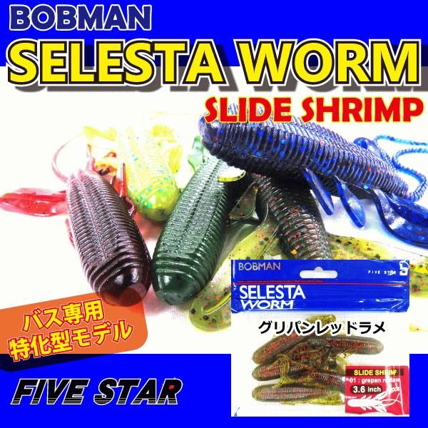 商品情報バス用ワーム ファイブスター ボブマン セレスタワーム スライドシュリンプ 3.6インチ BOBMAN SELESTA WORM ブラックバス バスフィッシング用ルアー ソフトルアー