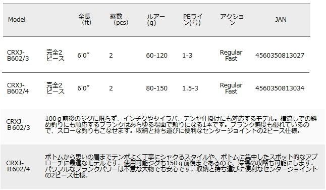 メジャークラフト 「三代目」 クロステージ ジギング CRXJ-B602/4 (ベイトモデル) [OT] (SP) 【本店特別価格】