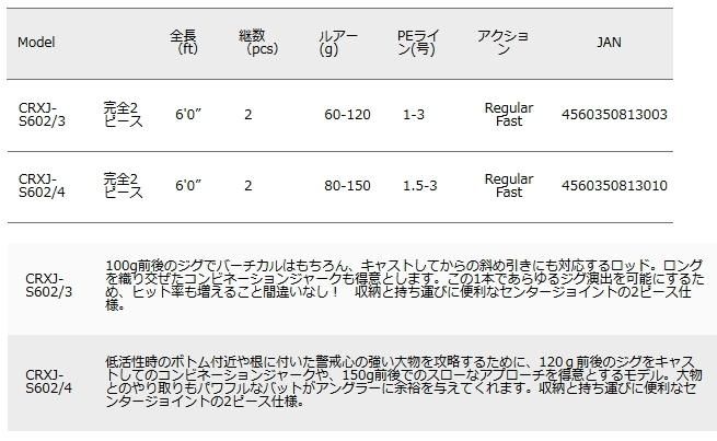 メジャークラフト 「三代目」 クロステージ ジギング CRXJ-S602/3 (スピニングモデル) [OT] (SP) 【本店特別価格】