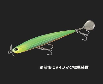 特徴のプロップとブレードは波動を生み出す事は勿論、 前後で水流を受ける事によりルアーの着水地点から一定のレンジを スローリトリーブでのアプローチが可能。ヒラメの食い気にスイッチを入れる 小刻みなロールアクションはフォール時も水平姿勢でアクションを演出。 今まで攻めきれなかったシャローエリアの攻略を可能にします。