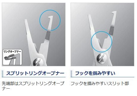 ●オモリつぶし、ハリはずし、ラインカッター(ナイロン糸専用)等、釣り専用機能を搭載