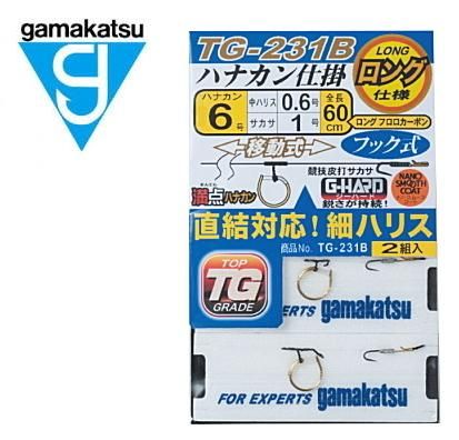 ハナカンにはタモの編み目を拾いにくい「満点ハナカン」を、サカサには皮打ちに最適な「G-HARD 競技皮打サカサ(フック式)」を使用した、軽量なノーマルタイプのハナカン仕掛です。ハナカンは編み込み移動式、直結式ハナカン仕掛に対応するワンランク細い号数のフロロカーボン中ハリス60cmのロング仕様です。