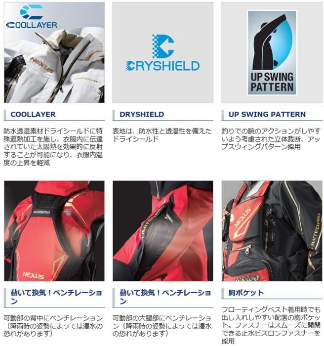 商品情報シマノ SHIMANO NEXUS DS クール レインスーツ LIMITED PRO RA-123R / レインウェア レインスーツ 雨合羽