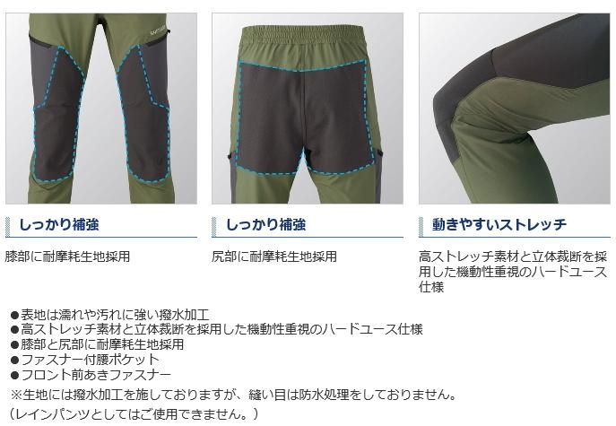 ●高ストレッチ素材と立体裁断を採用した機動性重視のハードユース仕様