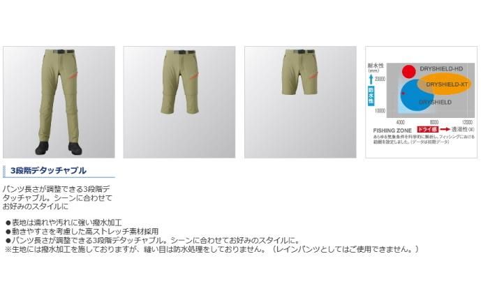 商品情報シマノ 撥水ストレッチ デタッチャブルパンツ PA-044R SHIMANO フィッシングウェア