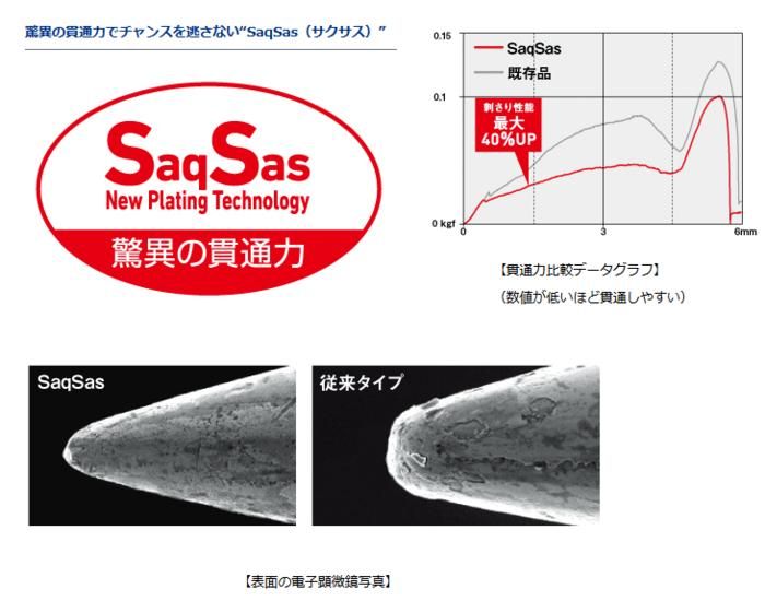 ネクタイスカート&フックのユニットには紅牙替えユニットαサクサス採用。簡単にフック交換が可能です。フックはもちろん驚異の貫通力紅牙フックサクサスSサイズを採用。実績の高いカラーを中心にカラーセレクトしています。