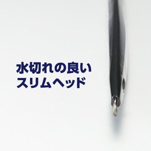実績の高いバタフライロングのコンセプトをショアジギングに展開する、コルトスナイパーロング。ボディ全体をスリムにデザインすることで、ジャーク時の抜け感を最も重視し、軽い力で簡単にスライド幅の大きなダートを実現する設計です。お勧めはスラッグジャーク。ジャーク後に、ラインスラッグを意図的に作ることで、ジグのスライド幅をさらに大きくすることが可能になります。上手にスライド幅を大きくできると、水中をジグが浮遊するスライド時間も長くなるため、ジャーク時にかかるジグの重さも軽く感じられる様になります。細身なボディでありながら、ジグの両端が薄く成形されているので、キャスト時の振り抜けが軽く、飛行姿勢も乱れにくい。