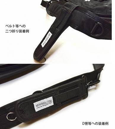 ショルダーバッグのベルトやベルトループなどにカラビナ留めもループ留めも可能なミニマルプライヤーホルダー