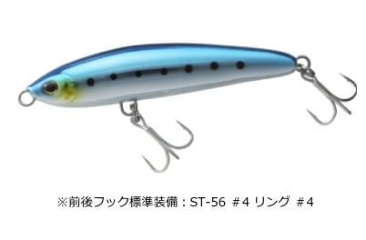 スモールベイトパターンをヘビータックルで攻略する。しかも広範囲に・・・。そんなことを実現するために開発されたコンパクトシンキングペンシル。大型魚が小魚を偏食する「シラスパターン」等において、その強度や飛距離等の問題でアクション等に不満を抱きながらも小型のメタルジグを使うしかなかった状況をカバーする「ありそうでなかった」山本典史監修の秘密兵器。完全ソリッドボディ構造により比重と強度を高め、さらに破壊強度150lb以上(グローブライド社テストによる)の貫通ワイヤー構造の採用。飛距離もさることながら、スイミングとフォールも重視し、ナブラ撃ちなどで重要となる、面と点の攻めを高次元で実現。クリア系ボディのリアル感はリソッドボディならでは。