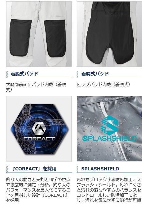 釣り人の動きを実釣と科学の視点で分析し、汚れをブロックする素材を選定した、COREACT採用ウェア。