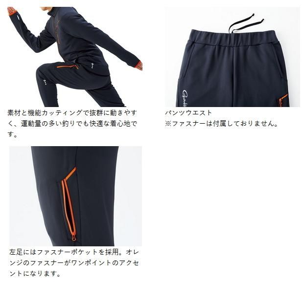 ●軽量で高いストレッチ性能を持った素材を使用し、ミドラーとして着まわしやすいアイテムです。●素材が持つストレッチ性能で体にフィットし、人間の動作で発生する様々な動きに対応。●素材と機能カッティングで抜群に動きやすく、運動量の多い釣りでも快適な着心地です。●左足にはファスナーポケットを採用。オレンジのファスナーがワンポイントのアクセントになります。●ファスナー引手はつまみ易いオリジナル引手を採用。