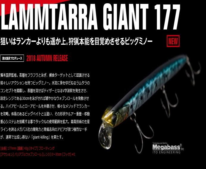 商品情報アピア (APIA) メガバス (Megabass) ラムタラ ジャイアント LAMMTARRA GIANT 177 シーバス ルアー ミノー