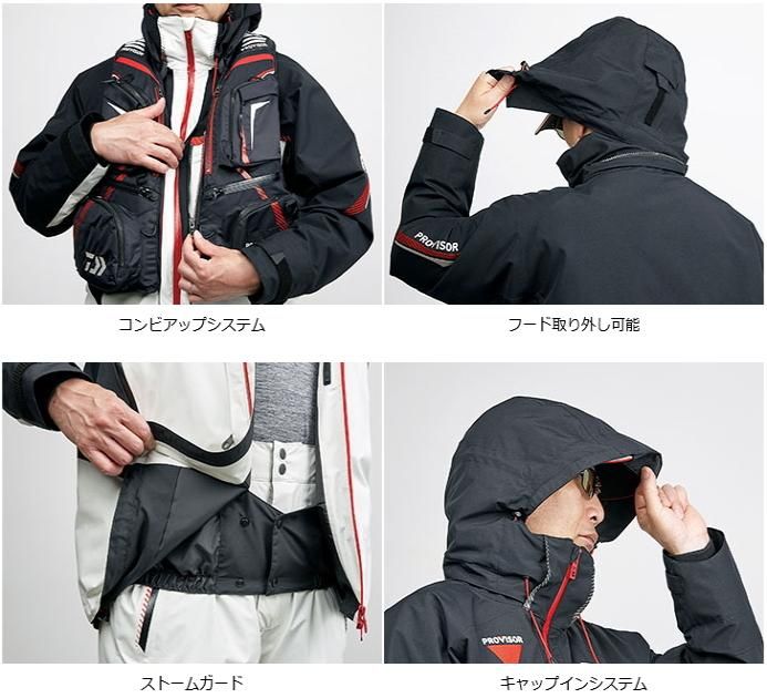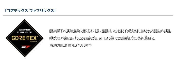 表地は、GORE-TEXファブリクス2層素材を採用。磯用フローティングベストと一体化可能なコンビアップファスナーは、足元の視界を確保し安全性にも配慮。ジャケット内側にはストームガードを搭載し、冷気の侵入、暖気の流出を軽減。磯フィールドで、信頼のおけるプロテクションと快適さを提供します。