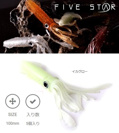 イカ型ワーム ファイブスター ボブマン セレスタワーム イカ 100mm グロウ / ルアー / メール便可 / つり具 【本店特別価格】