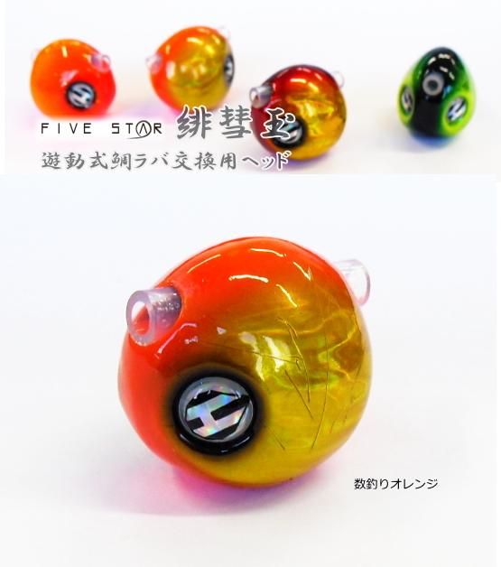 遊動式鯛ラバ交換用ヘッド ファイブスター 緋彗玉 ヒスイダマ 80g 数釣りオレンジ / メール便可 【本店特別価格】