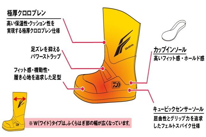 商品情報ダイワ スーパーウォームアップブーツ SUPER WARM UP BOOTS WB-3550 DAIWA グローブライド フィッシングブーツ フットウエア フェルトスパイクソール 防寒シューズ