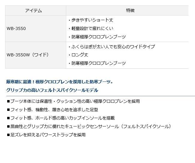商品情報ダイワ スーパーウォームアップブーツ SUPER WARM UP BOOTS WB-3550W(ワイド) DAIWA グローブライド フィッシングブーツ フットウエア フェルトスパイクソール 防寒シューズ