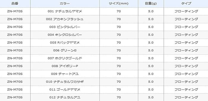 商品情報シマノ SHIMANO カーディフ フリューゲルフラット Flugel Flat 70F ZN-M70S / トラウト ルアー